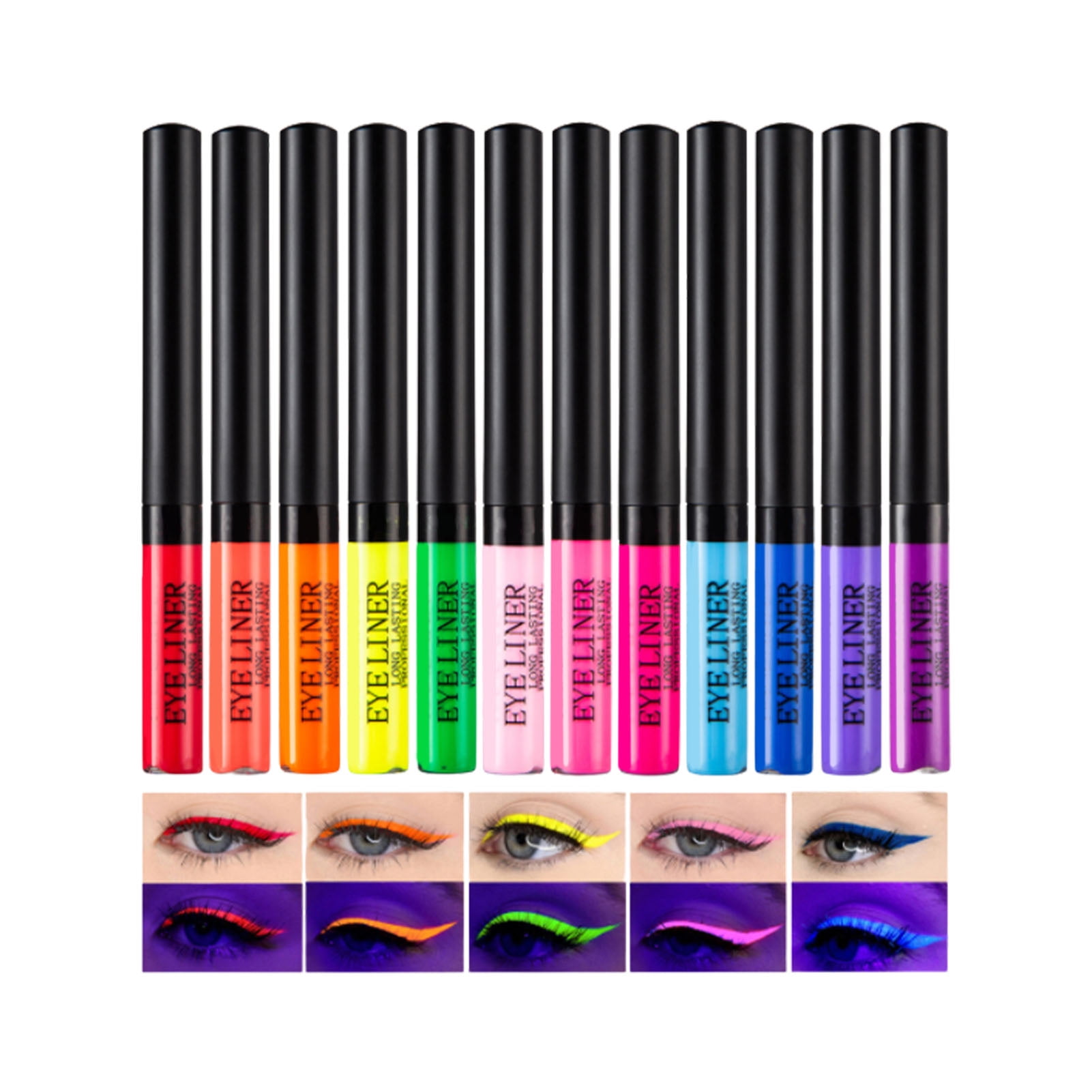 Viugreum 12 Colours Coloured Eyeliners Liquid Eyeliner Set Colourful Waterproof Eye Liners For Women Long Lasting Eye Makeup Kit High Color Rendering Walmart Com